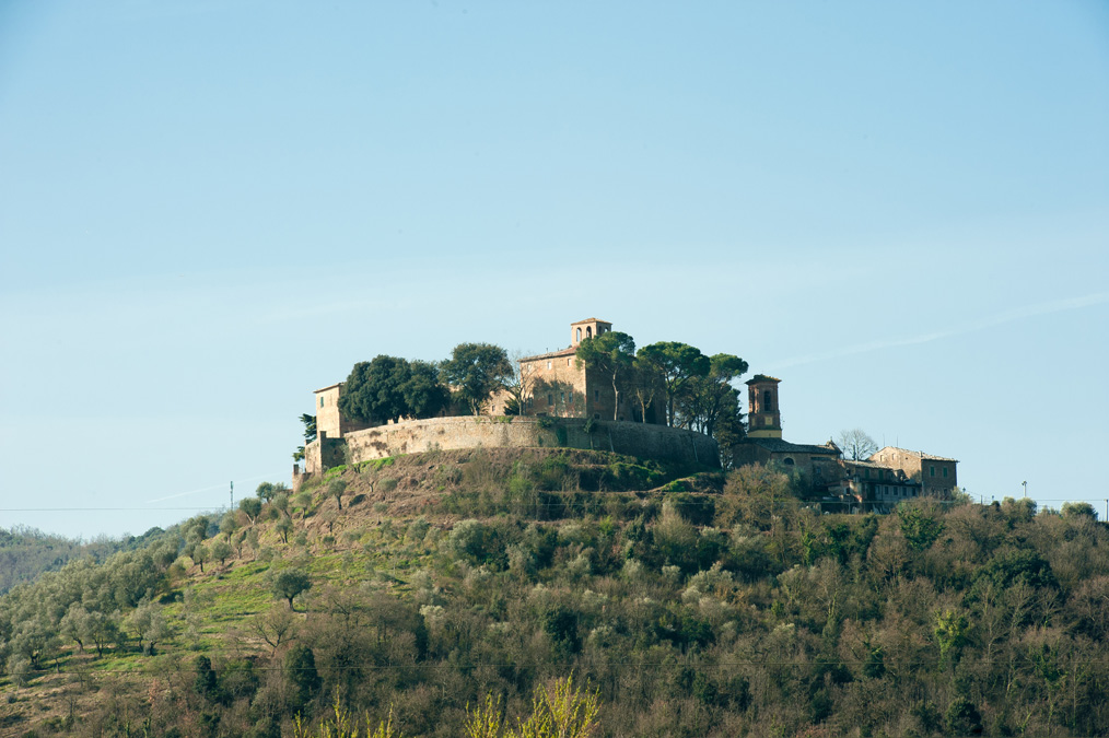 Sulla sommità di un contrafforte del Monte Penna, ad un’altitudine di 337 metri sul livello del mare, sorge il castello di Monte Sperello che sembra quasi incunearsi nella sottostante pianura ai piedi di Magione. Attestato fin dal 997, quando Ottone III ne confermava la proprietà al monastero di S. Gennaro di Campoleone, l’attuale Capolona vicino ad Arezzo, da esso si è intitolata la famiglia dei Montesperelli, tra le più antiche della città di Perugia. Feudo di questa schiatta nobiliare, probabilmente acquisito tramite un meccanismo di lenta erosione dei diritti spettanti all’ente monastico aretino, nelle elencazioni medievali il nucleo abitato appare censito sia come villa, quindi sprovvisto di mura di cinta, che come castello. È il caso di notare come nelle murature di due abitazioni poste all’interno dell’area castellana, risistemate nel corso degli ultimi due secoli, vi siano state inserite delle urne cinerarie etrusche rinvenute nella zona intorno alla metà del secolo XIX. Tra queste ve n’è una di particolare interesse, con scolpita una testa di medusa. Nel 1282 vi si censirono solo 6 fuochi per una popolazione di una trentina di abitanti scesi a 24 nel 1410. Gli abitanti di Monte Sperello, nel 1287, parteciparono alla bonifica della pianura sottostante insieme agli uomini di Monte Melino e Pian di Carpine. L’economia locale, in epoca medievale, doveva essere sostanzialmente basata sull’agricoltura e, a complemento di essa, sui prodotti spontanei del bosco che ancora oggi ricopre il Monte Penna. In passato, prima della bonifica duecentesca, anche la palude sottostante dovette costituire un fattore economico di un certo rilievo. Per quanto riguarda l’origine del vocabolo il secondo termine di cui si compone può avere una duplice origine. Esso, infatti, può ricondursi a pirum, pero, ad indicare quindi un rilievo caratterizzato dalla presenza di queste piante, oppure al personale latino Perellius rimasto in forma primitiva. La presenza di resti di una struttura muraria riconducibili all’epoca romana affioranti all’inizio della salita che conduce all’insediamento, nella parte a nord-ovest dello stesso, conferisce a mio avviso una certa solidità a quest’ultima proposta. |